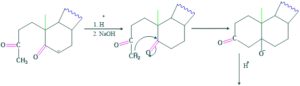 When 12-oxodeoxycholic acid is oxidized it forms dicarboxylic acid which on acetylation form seven membered anhydride instead of formation of cyclic ketone which exhibits failure of Blanks rule.